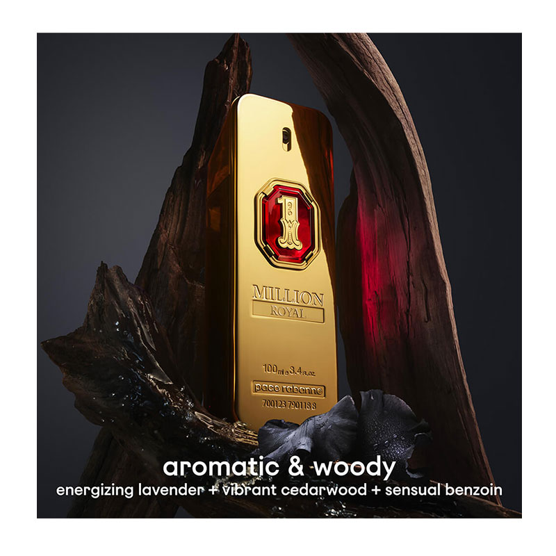 Non essere vincolato dalle convenzioni, trova la libertà di vivere secondo le tue regole con 1 Million Royal: una miscela legnosa fresca ed esuberante che si incontra con una sensualità distintiva per rivelare ciò che ti rende unico.